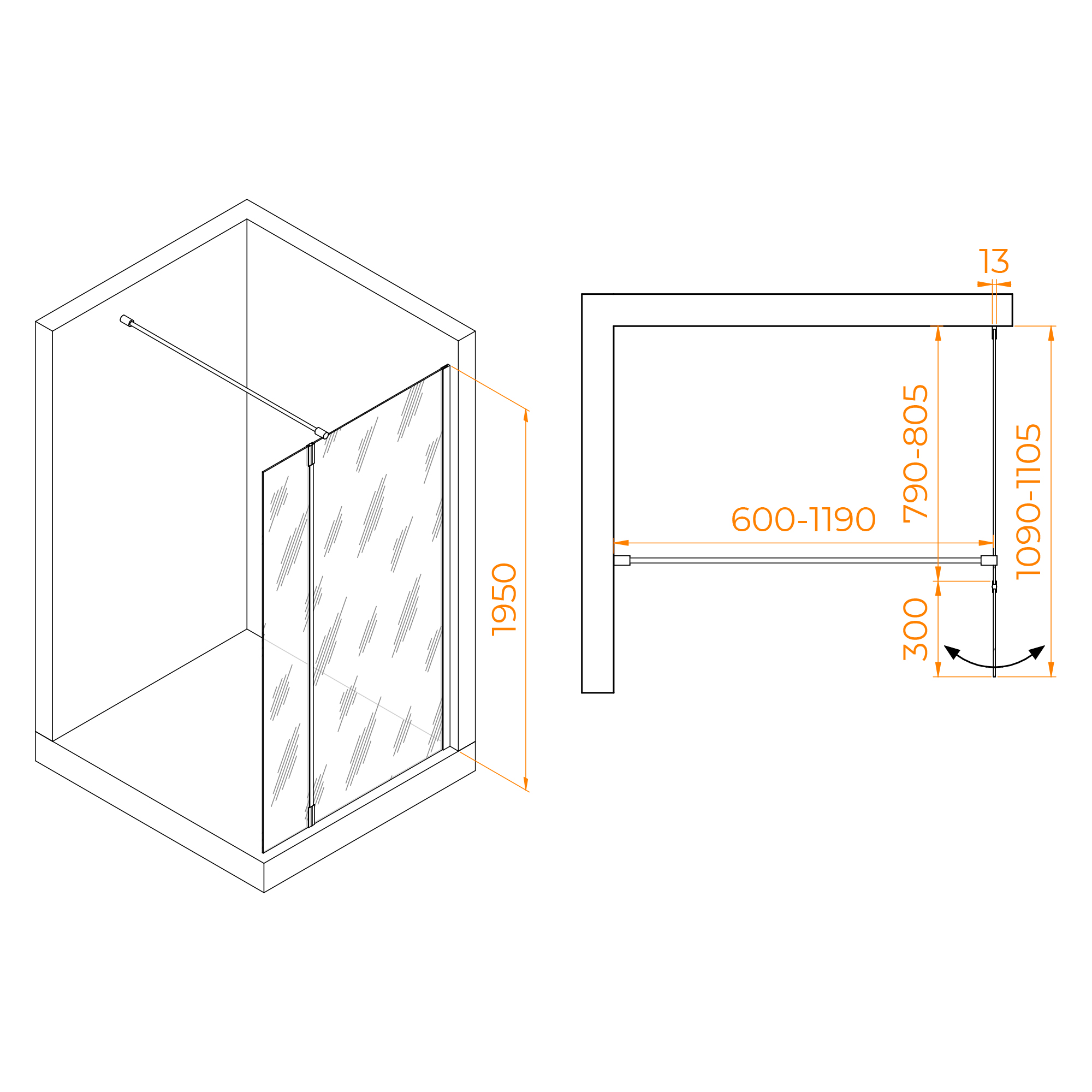 Душевая перегородка RGW WA-051 (WA-010 + Z-071)