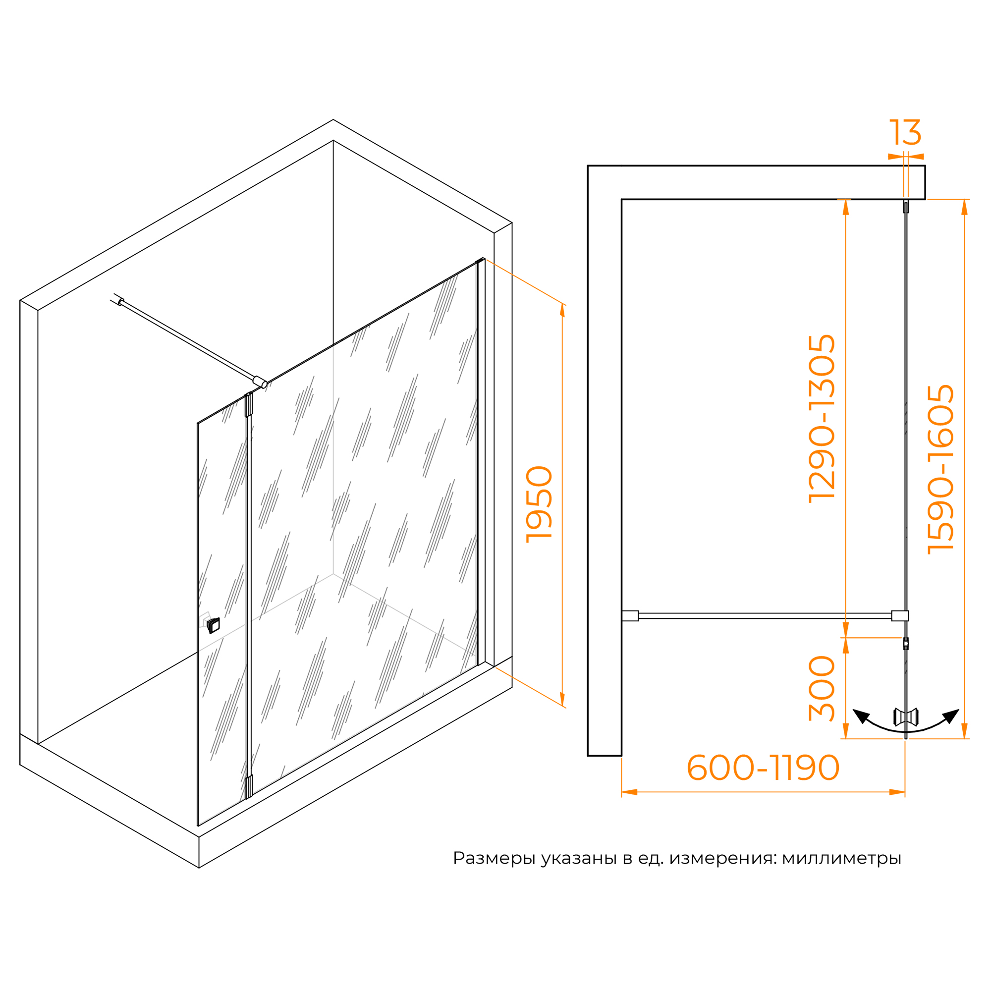Душевая перегородка RGW WA-054Gb (WA-010Gb + Z-072Gb)