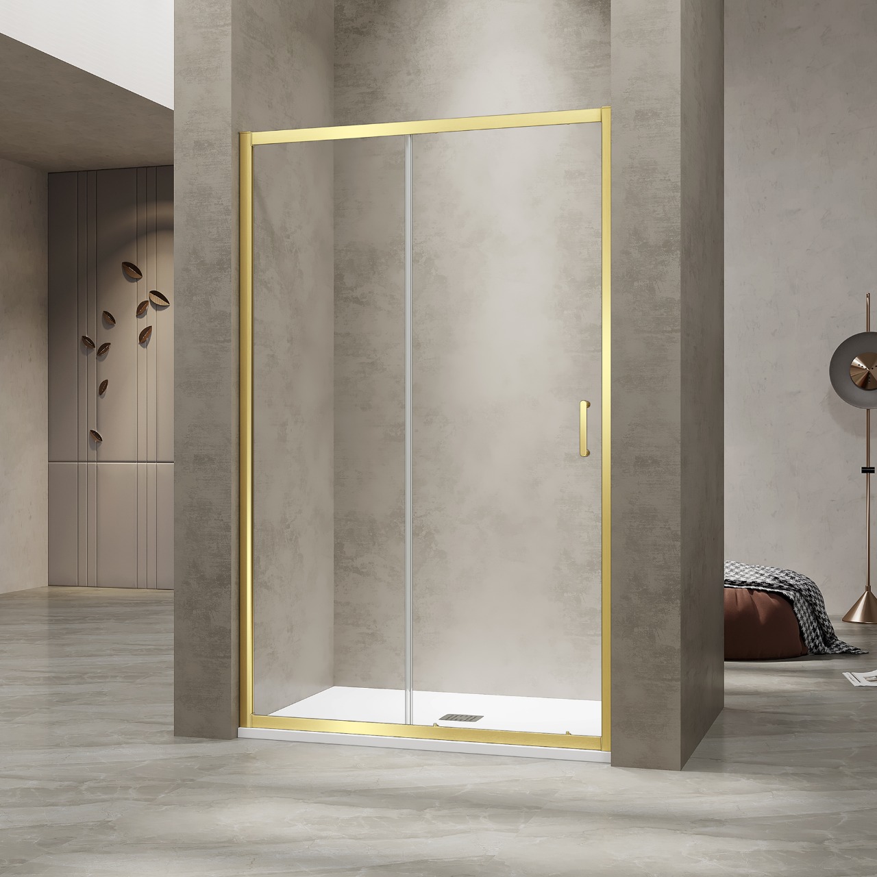 Душевая раздвижная дверь-купе в нишу PA-114Gb профиль золото браш
