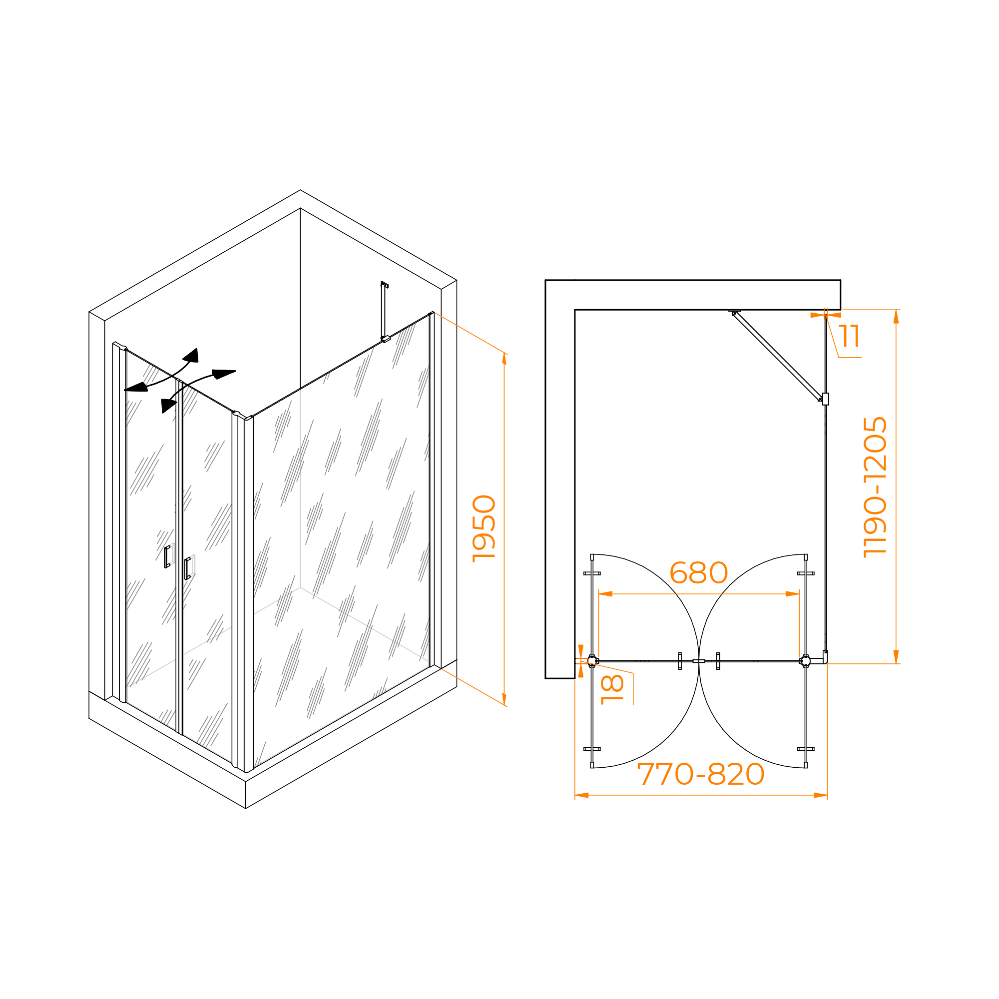Душевой уголок RGW PA-144B (PA-104B+Z-050-2B+O-204B)