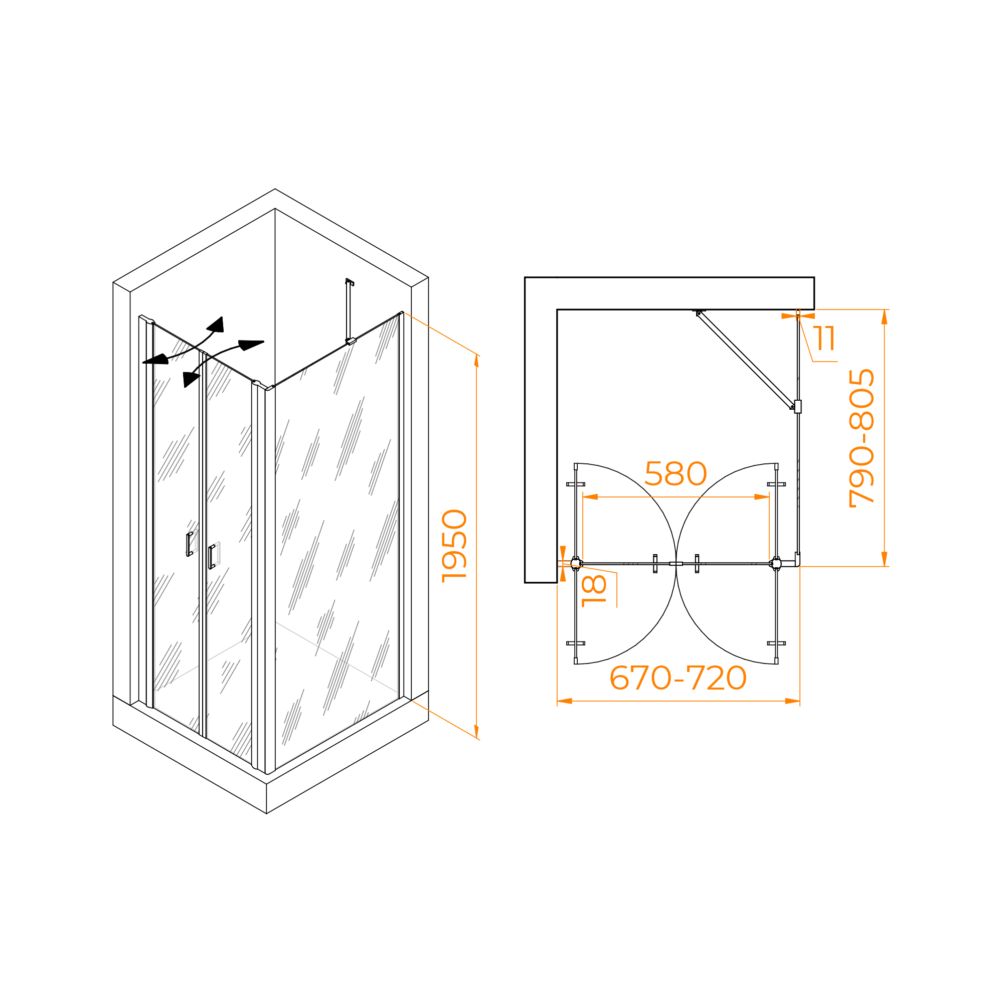 Душевой уголок RGW PA-144B (PA-104B+Z-050-2B+O-204B)